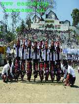 The rhythmic thumping of drums, synchronized movement of feet and swift agile steps of traditional dancers in colorful dresses left President Pratibha