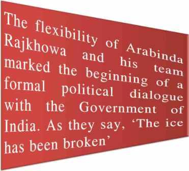 In what is already being dubbed by the Paresh Barua faction of the ULFA as a ‘sell out’, a neo-pragmatic approach on the other hand is that the flexibility of Arabinda Rajkhowa and his team marked the beginning of a formal political dialogue with the Government of India. As they say, ‘The ice has been broken’.