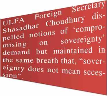 The reference is to ULFA’s announcement in New Delhi on the 5th of August, 2011 that “sovereignty does not mean secession”.