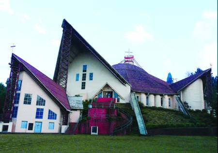 The Catholic Cathedral of Kohima is unique in many ways. Its architectural might and complexity is a surprise. The semicircular building with its modern architectural thinking covers one side of the Araduura hill with every bit of construction planned in detail with no space wasted. Its façade is shaped like a traditional Naga House. A complete structure, including official and residential rooms!