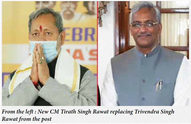 The 56-year-old MP from Pauri replaced Trivendra Singh Rawat who stepped down from the post. Tirath was chosen over prominent candidates like Union Ministers Ramesh Pokhriyal Nishank, Dhan Singh Rawat, Satpal Maharaj and others.